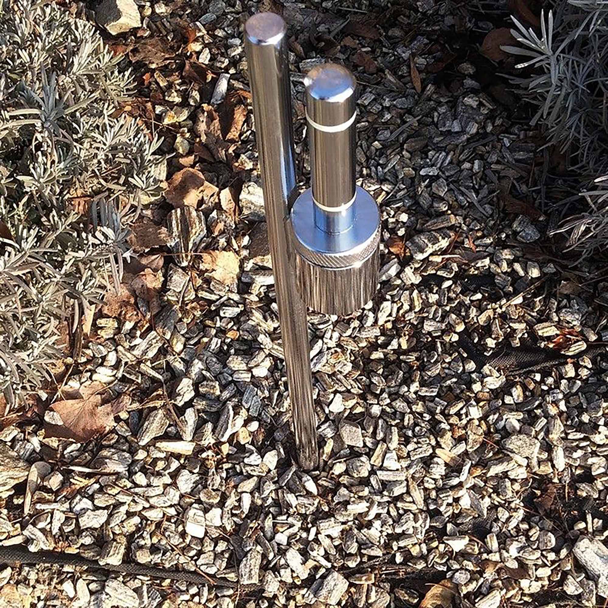 The ground spike is made of steel and is ideal for hard surfaces such as compacted soil.