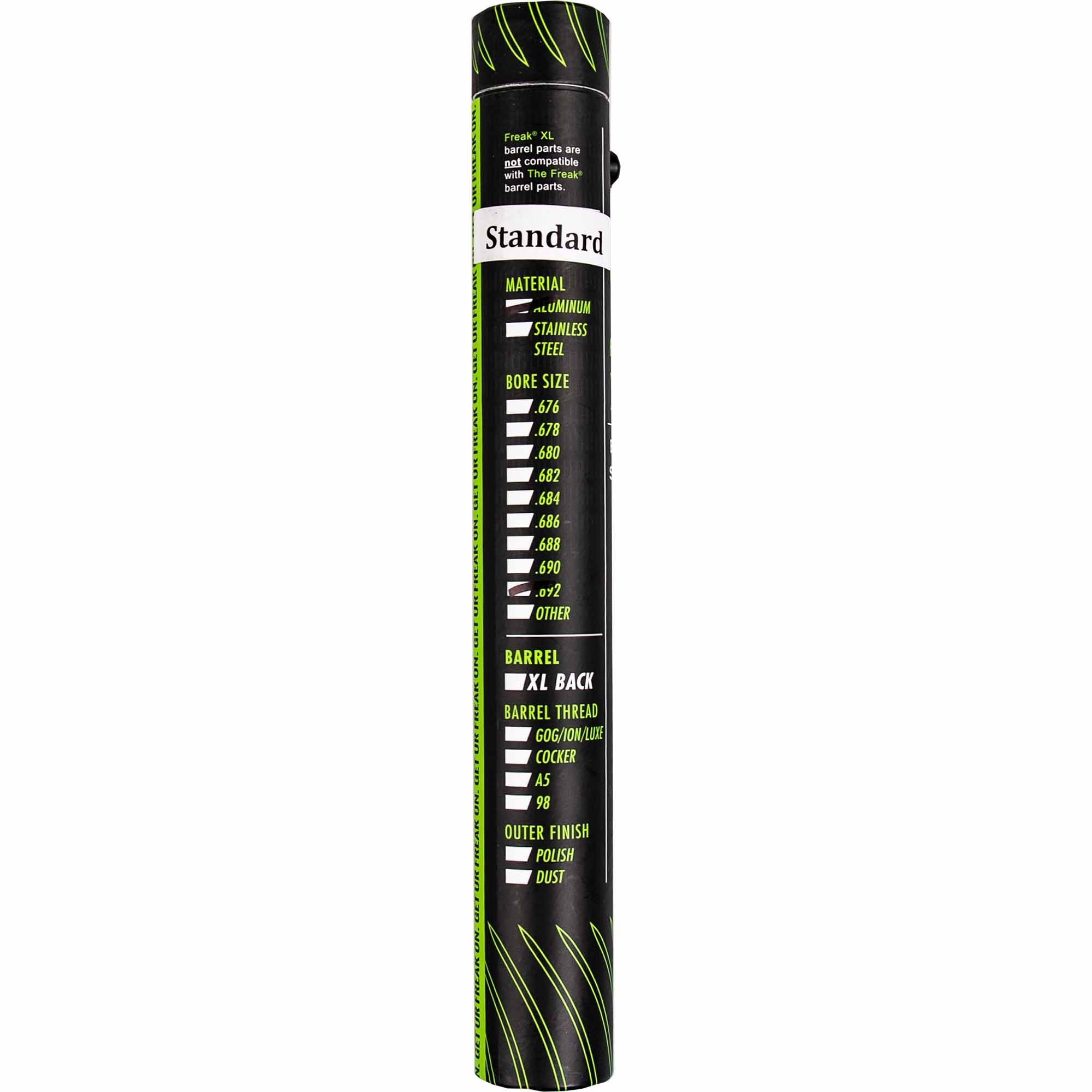 All aluminium Freak Inserts are color coded and imprinted with the precise calibre.