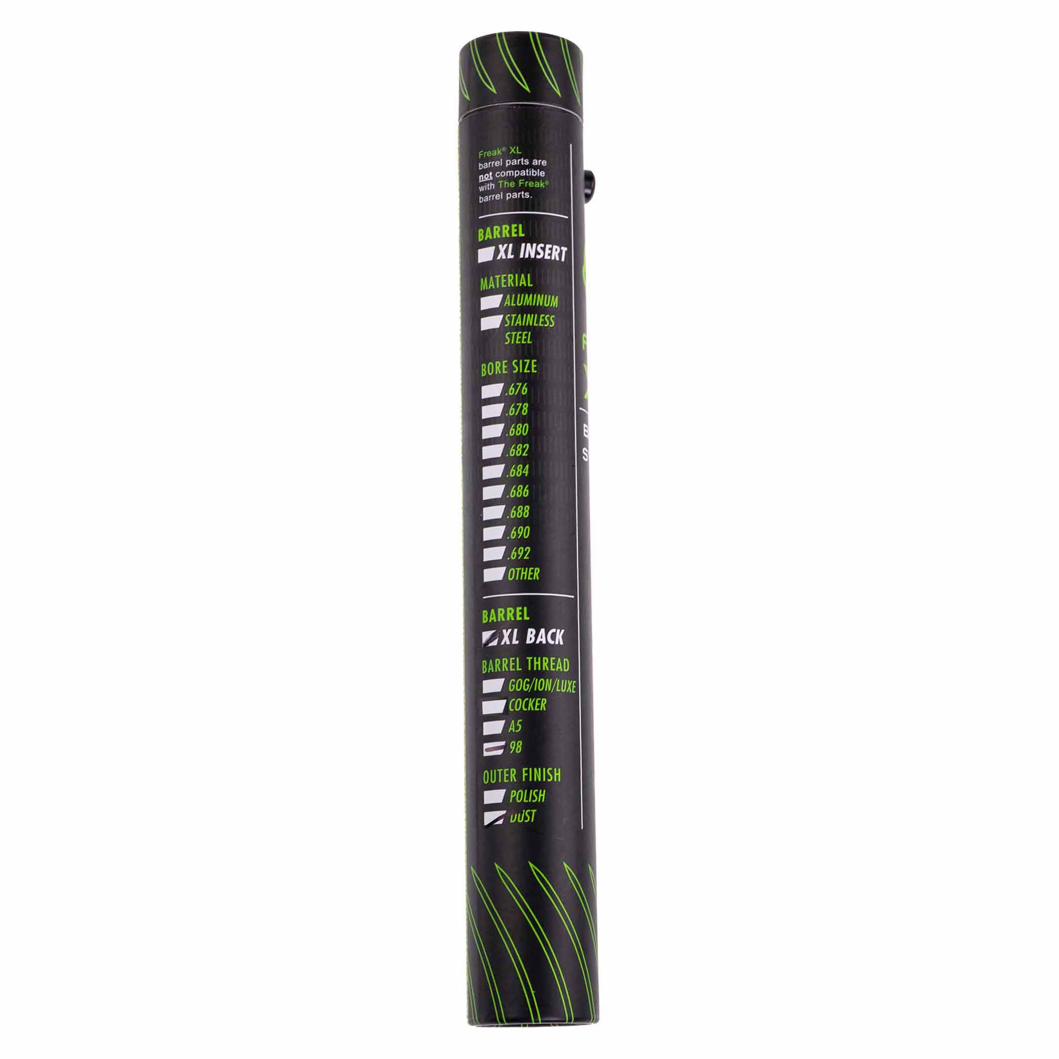 With its ability to adapt to changing paint size and quality without requiring a gear bag loaded down with barrel backs, the FREAK® barrel system set the world standard for portability, performance and flexibility. In its 8-inch (20 centimeter) XL control bore size, the FREAK® XL barrel system is even better, delivering improved efficiency and consistency.