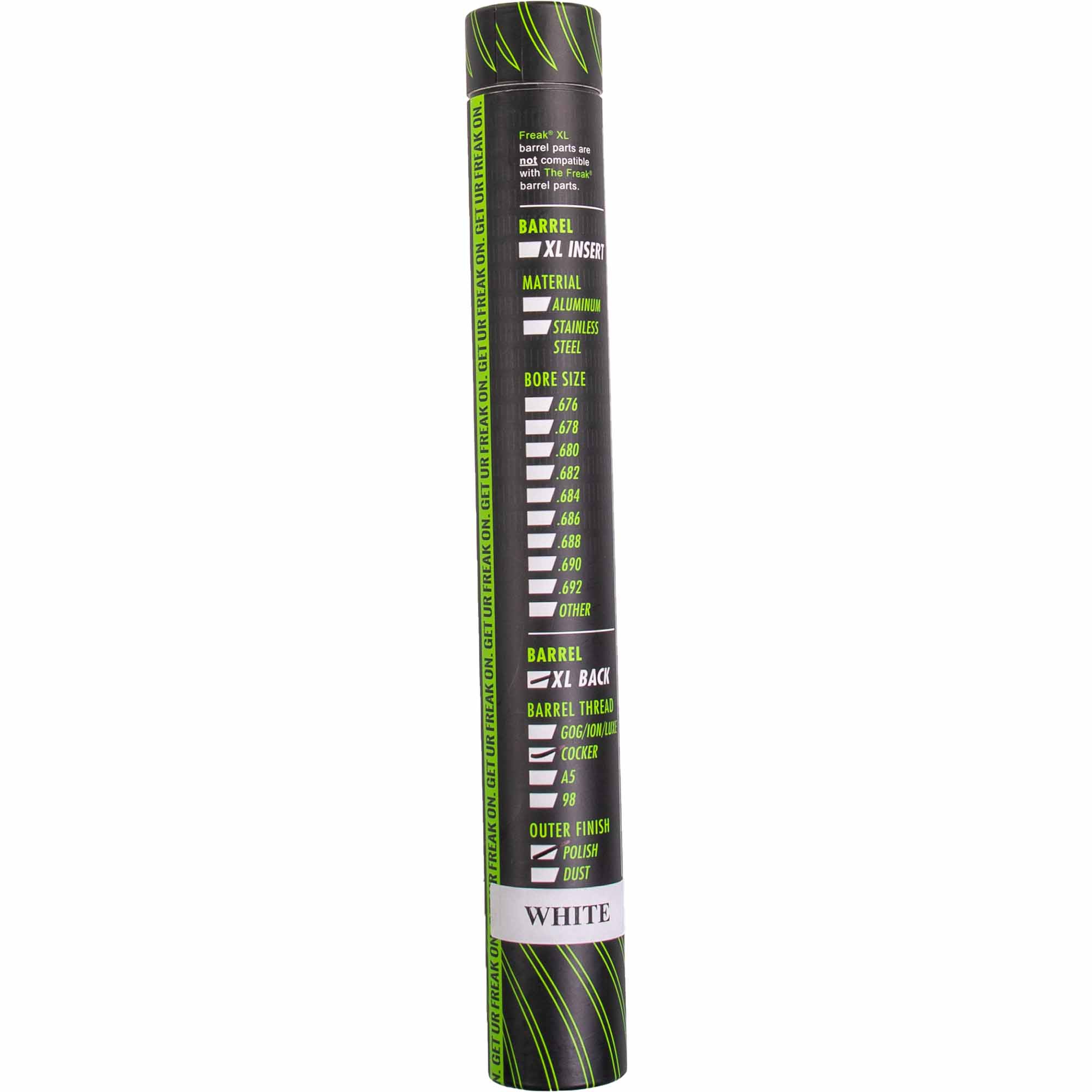 There is a large selection for each of the three components of the FREAK® barrel system, from different threads for most markers on the market, to the classic barrel front, All American barrel front or All Condition Performance barrel front, to 9 different inner diameters for the sleeves.